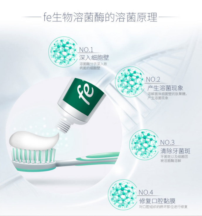 fe生物溶菌酶可以有效降低菌斑指数、减轻牙龈牙周问题,呵护健康口腔